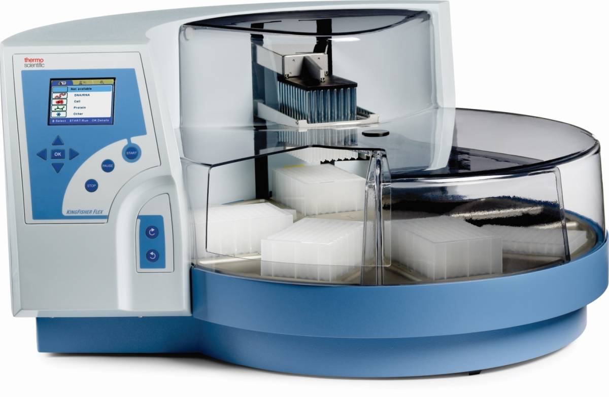 KingFisher Flex全自动磁珠纯化系统是适于分离DNA/RNA、蛋白和细胞的全自动提取系统,本产品基于**的KingFisher技术(**号US 6447729,US 6448092)而设计。通过特制的磁棒吸附、转移和释放磁珠,实现样本的提取,避免了液体处理过程,提高了自动化程度。自上市以来,获得了众多客户的认可,已成为磁珠提取领域的行业金标准。